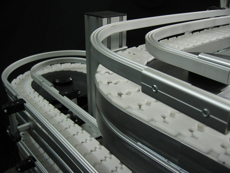 單向頂部運(yùn)行鏈板:不同高度均設(shè)有進(jìn)出口,總長達(dá)30 m(100英尺)